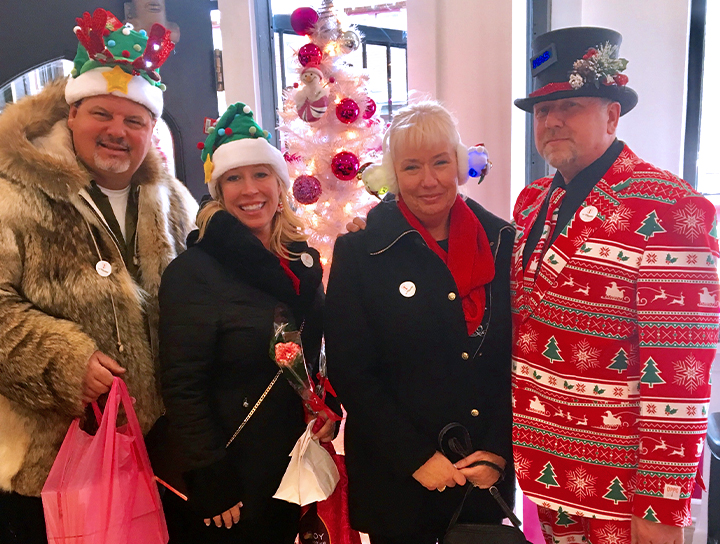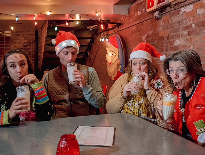 Tinsel & Taverns, with an elevated festive twist! Over 3.5 hours, we’ll visit three historic pre-Prohibition bars, enjoying drinks, a sit-down holiday dinner, dessert, a little bowling along the way, and even a sweet treat take-away!